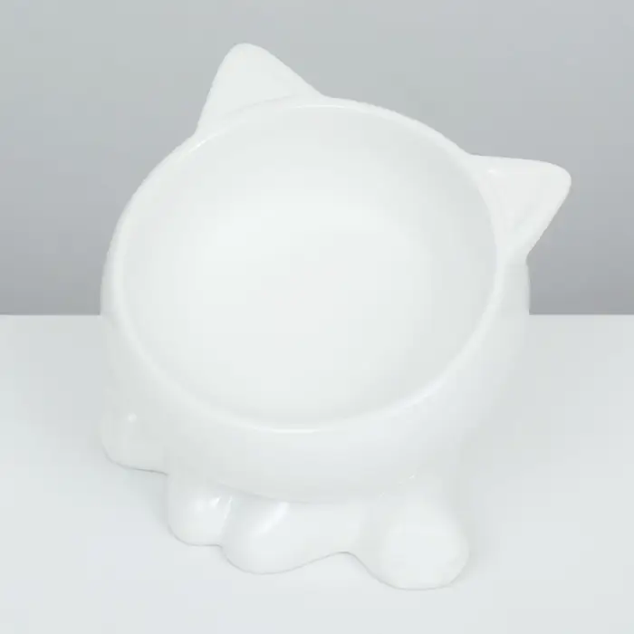 Миска керамическая «Киса» на подставке-лапках 200 мл 13×12×8 см, белая