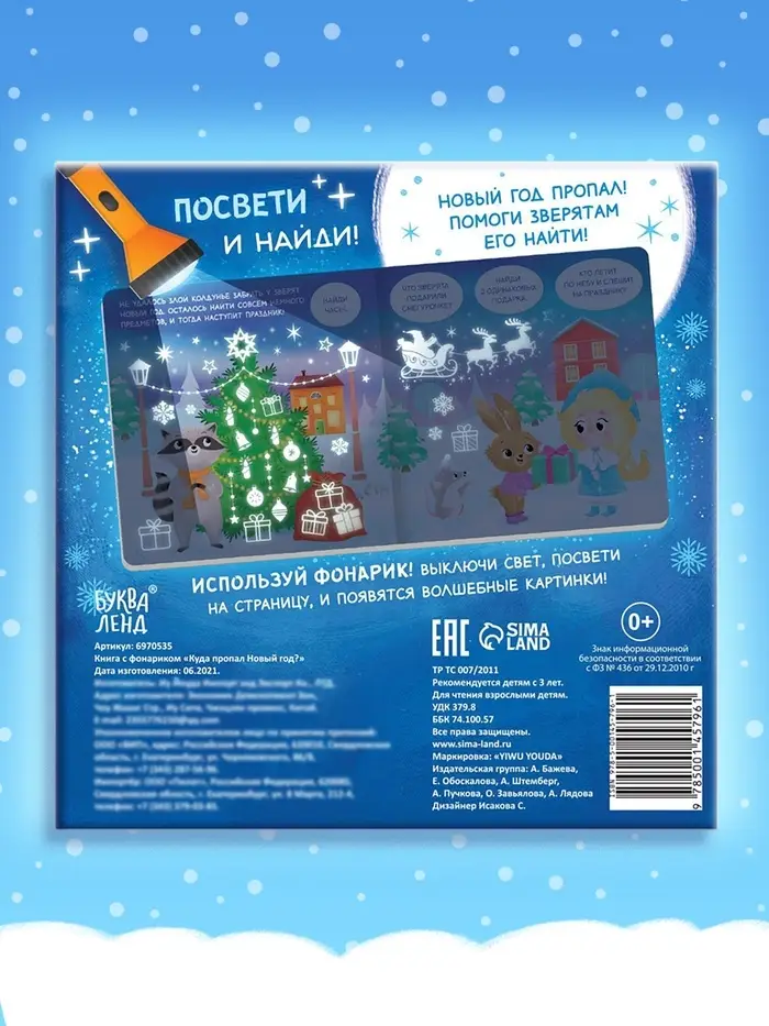 Книга с фонариком «Куда пропал Новый год?» станет любимым занятием для детей от 5 лет. Эти страницы с загадками и скрытыми предметами помогут ребёнку погрузиться в волшебную атмосферу праздника, используя фонарик для поиска новогодних секретов.