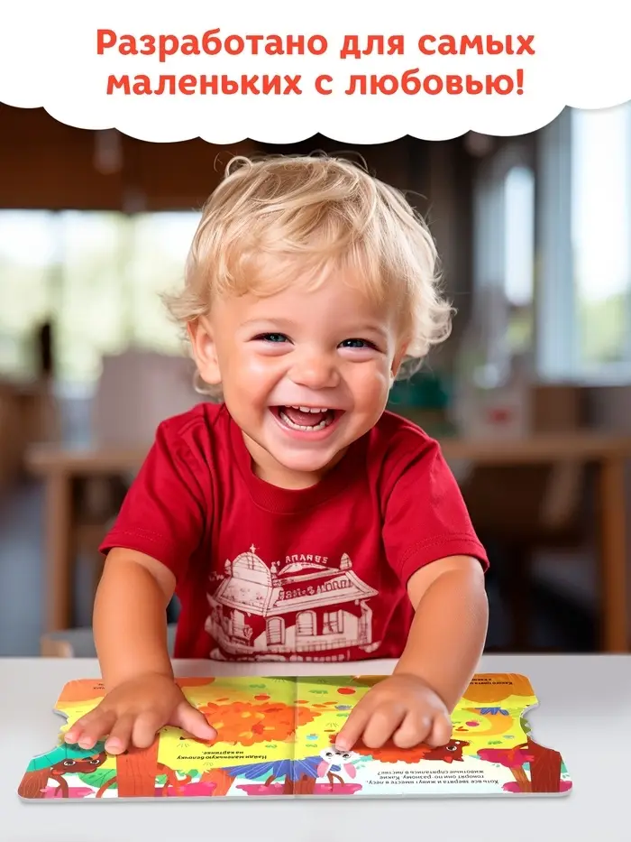 - Твёрдый переплёт защищает книгу и удобен для маленьких рук.