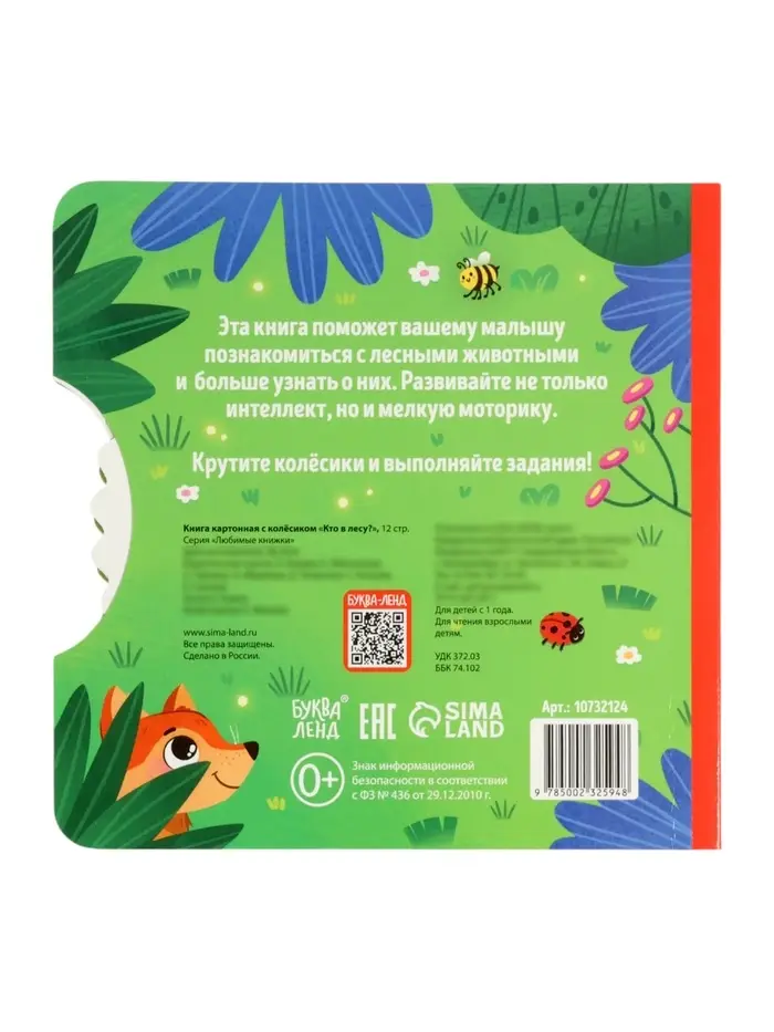 Книга картонная с колёсиком «Кто в лесу?», 12 стр.