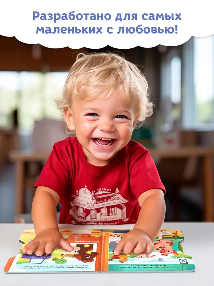 - Твёрдый переплёт защищает книгу и удобен для маленьких рук.