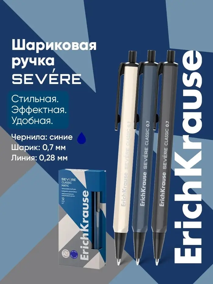 Ручка шариковая ErichKrause. Severe Matic Classic, автоматическая, синий стержень, узел 0.7 мм, премиум