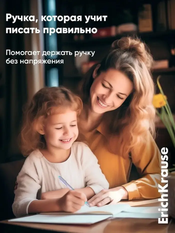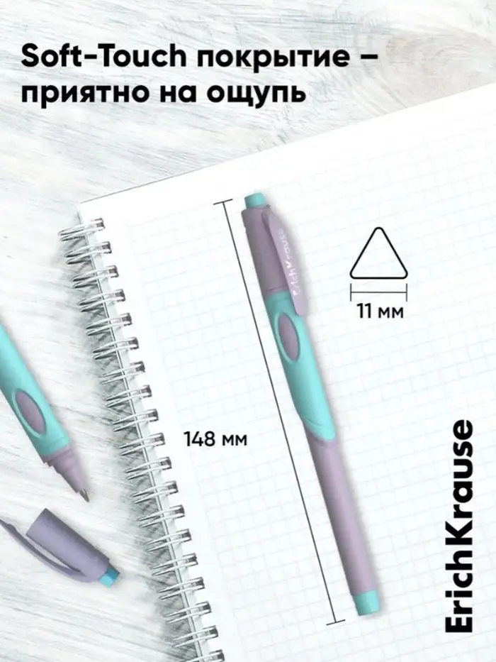 Ручка шариковая ErichKrause. ErgoLine Stick&Grip Pastel, синий стержень, узел 0.5 мм