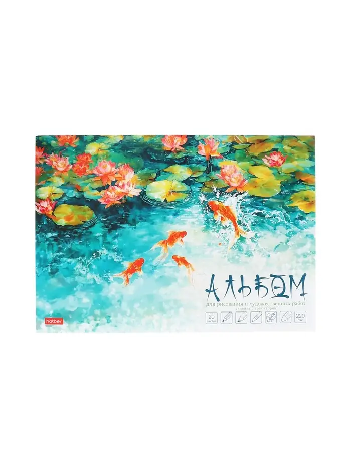Альбом для рисования Hatber «Золотые рыбки» А4, 20 листов, склейка с трёх сторон, обложка из мелованной бумаги