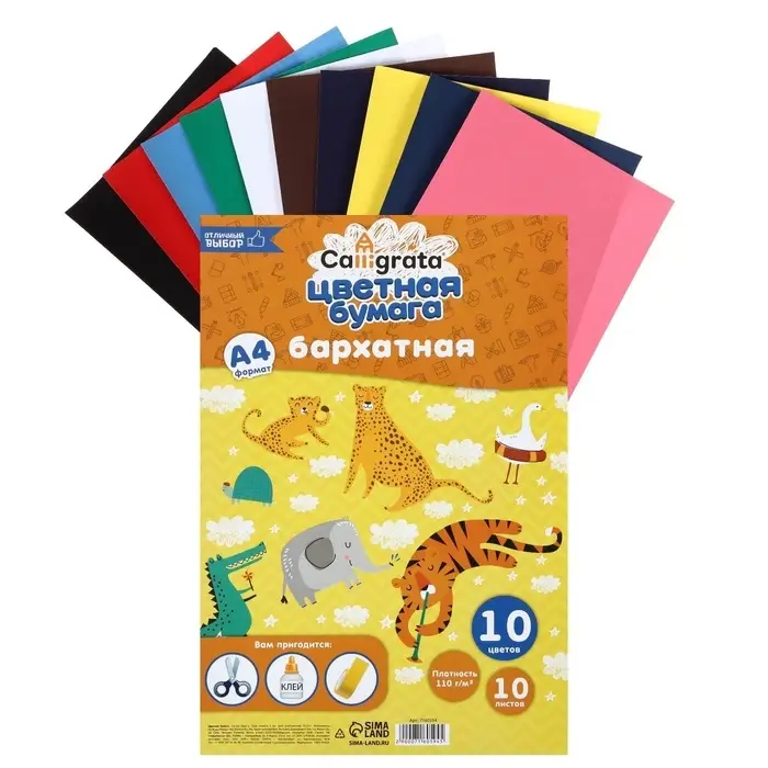 Набор бумаги бархатной А4, 10 листов, 10 цветов, плотность 110 г/м²