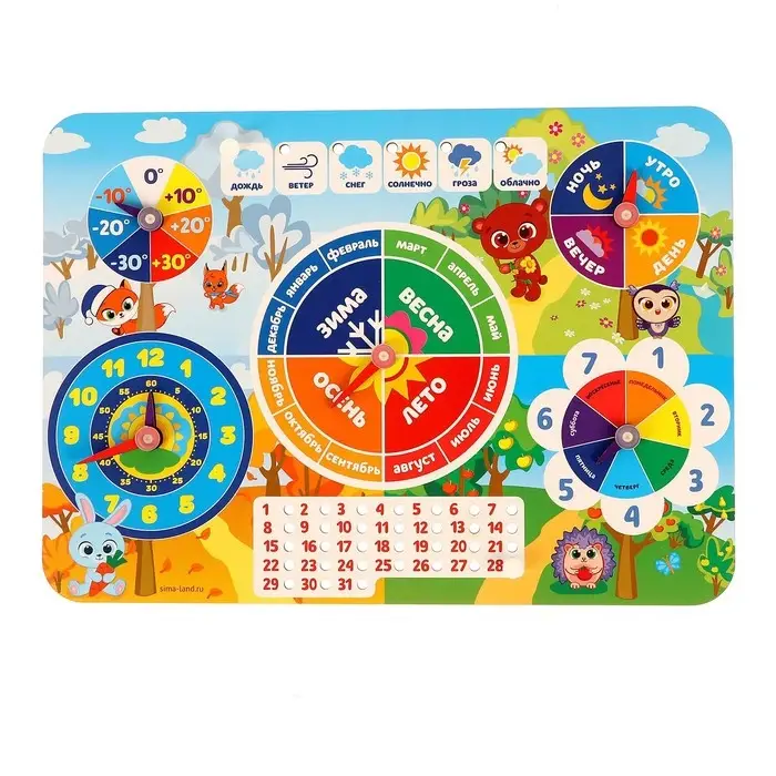 Развивающая игра 7в1 Лесная мастерская «Часы - календарь»
