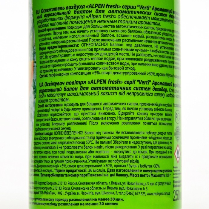 Сменный баллон для автоматического освежителя Alpen, Ароматный вернисаж 250 мл