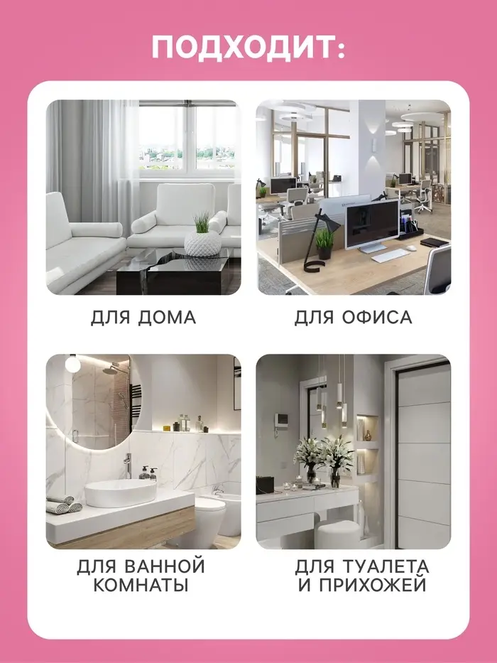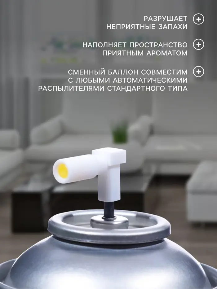 -"Сухое распыление" позволяет сохранить аромат на длительное время, не оставляет следов на кафельной плитке, потолке, обоях и гардинах.