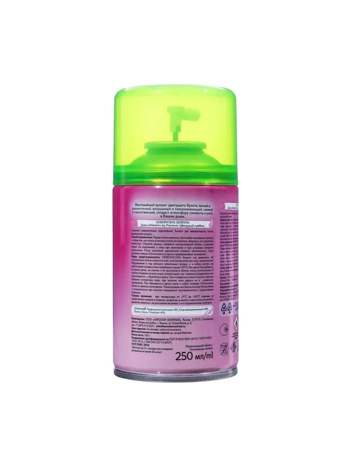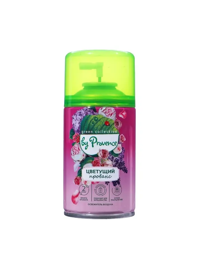 Универсальный сменный аэрозольный баллон "Цветущий Прованс" от GC by Provence с формулой "сухое распыление" создан специально для автоматических систем дезодорации воздуха.