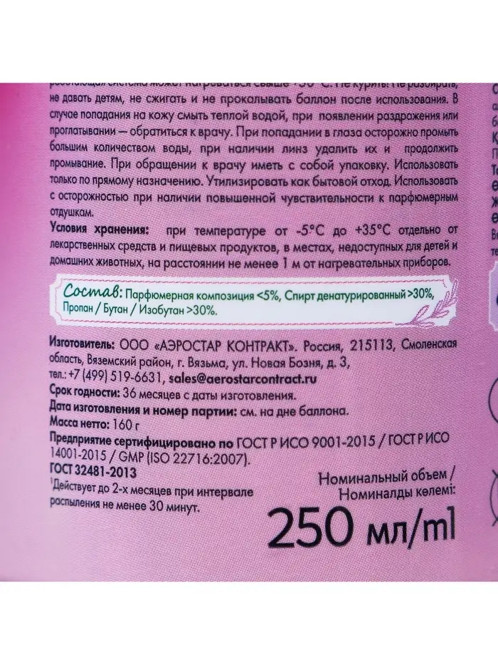 -Обладает ярко выраженным действием против запаха табачного дыма.