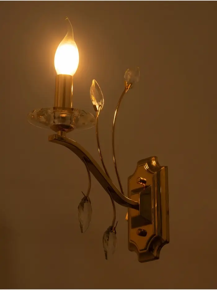- Классический стиль: Золотой металлический корпус и форма под свечу создают гармоничный образ, который легко впишется в интерьер в стиле неоклассика или классика. Такое бра станет акцентом вашего пространства, добавляя нотку роскоши.