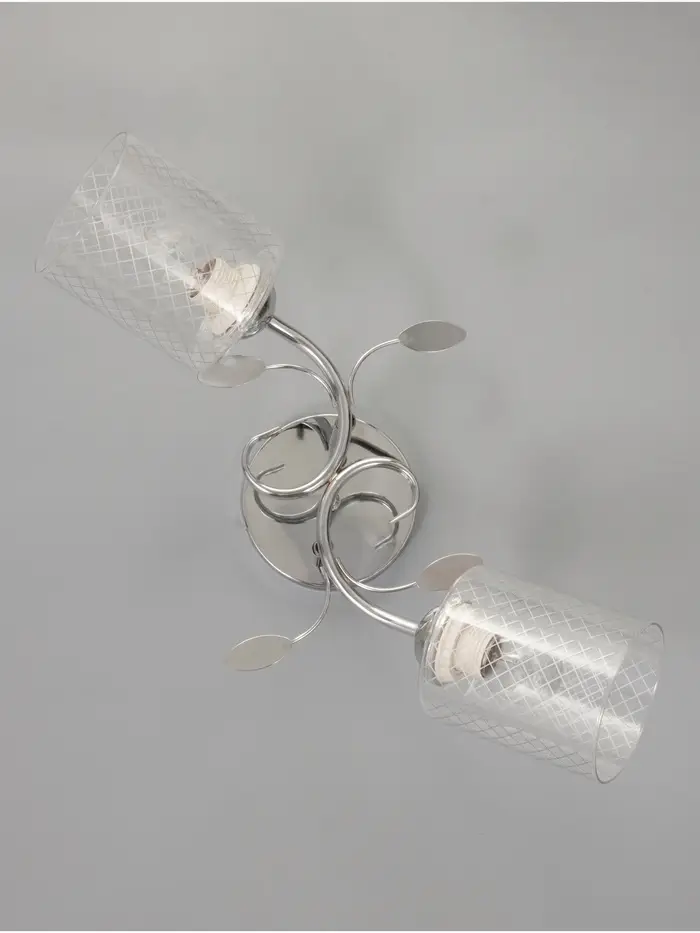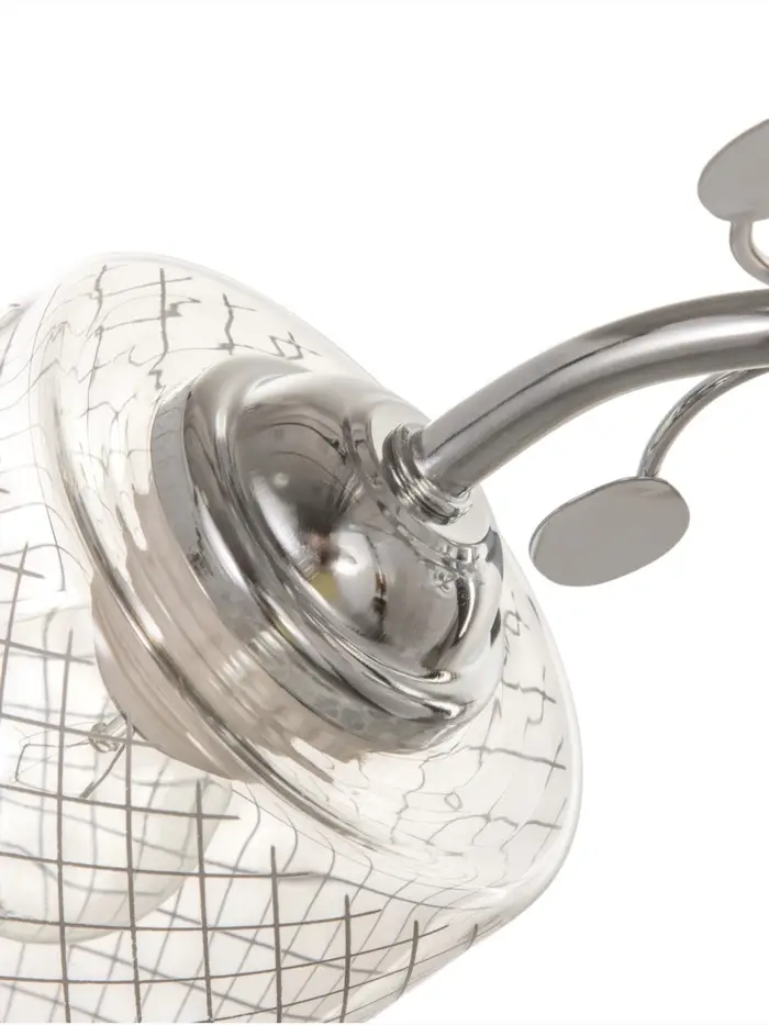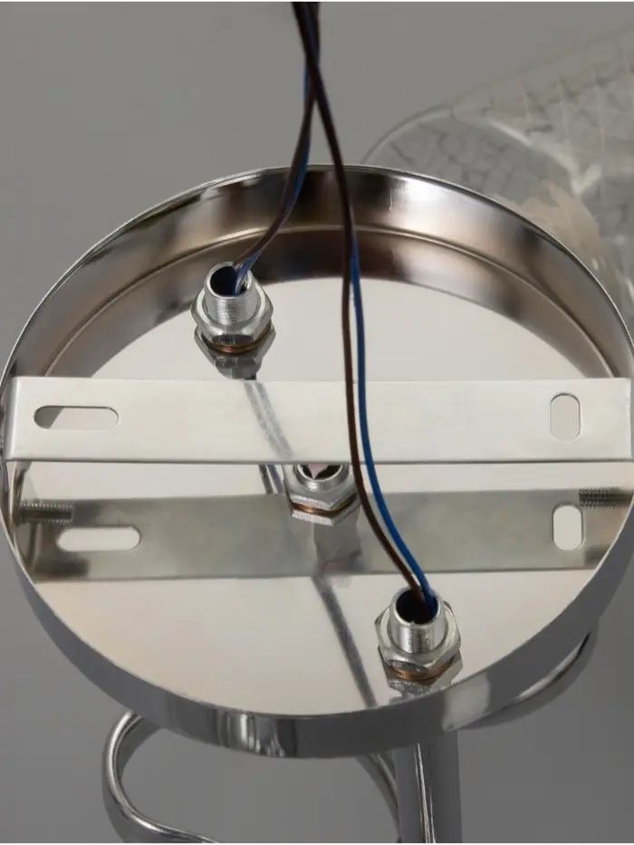 - Дизайн в стиле классики: Хромированный металлический каркас и прозрачные стеклянные цилиндры создают строгую, но не холодную композицию. Такой светильник не перегружает интерьер, сохраняя ощущение лёгкости и порядка.