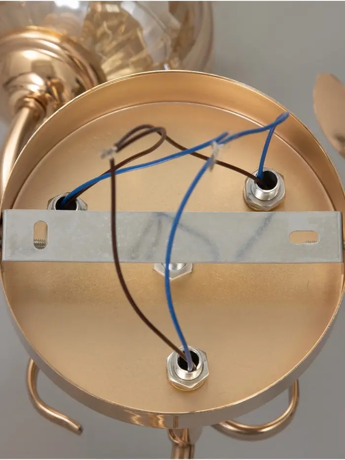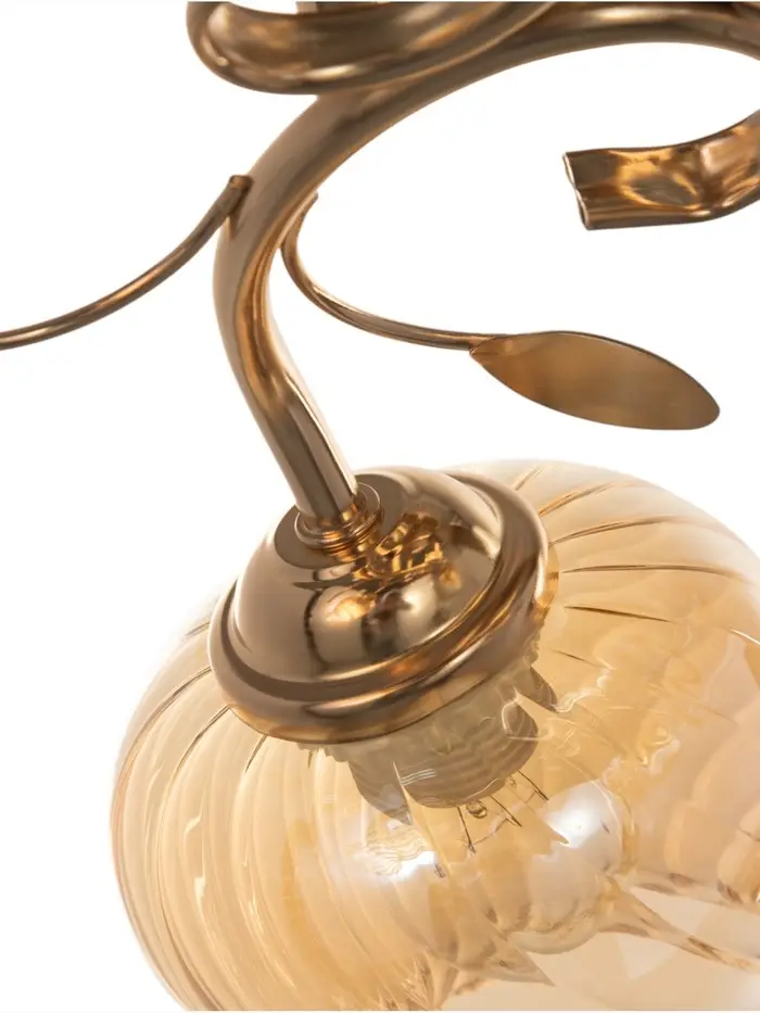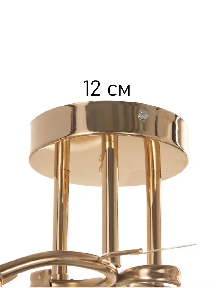 - Золотое основание из металла: Благородный оттенок сохраняет вид со временем, не тускнеет, не окисляется. Металл обеспечивает устойчивость конструкции — плафоны остаются на месте, не расшатываются.