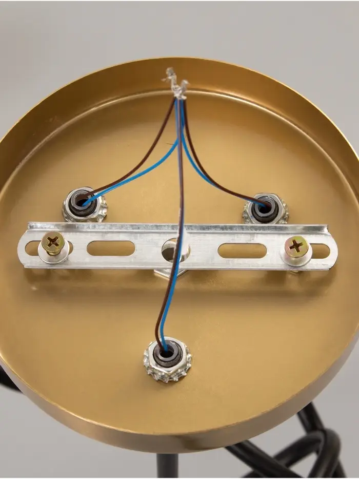- Контраст металлов: Комбинация чёрного и латунного оттенков придаёт светильнику глубину и выразительность. Латунь добавляет тёплый акцент, а чёрный металл — строгость, создавая баланс между роскошью и индустриальностью.