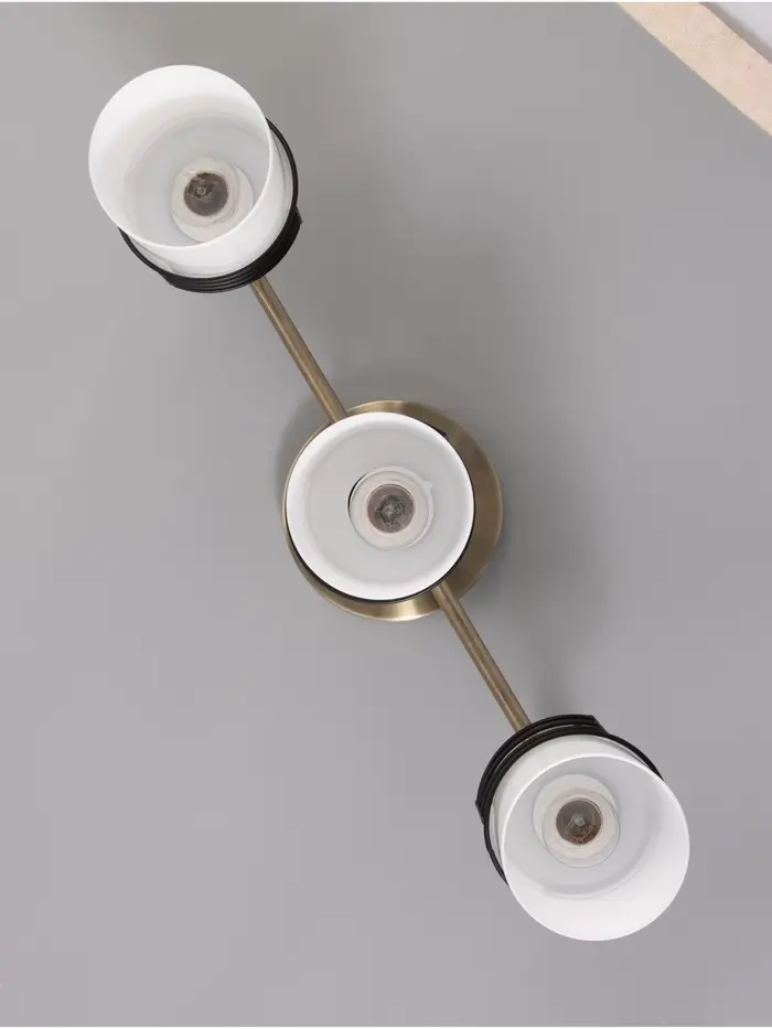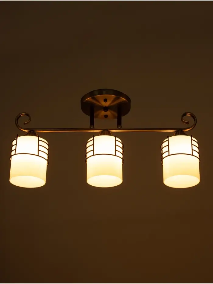- Два матовых стеклянных плафона в форме цилиндра: Рассеивают свет равномерно, без бликов. Белое покрытие внутри смягчает поток, делая его комфортным для глаз — подходит для повседневного использования.