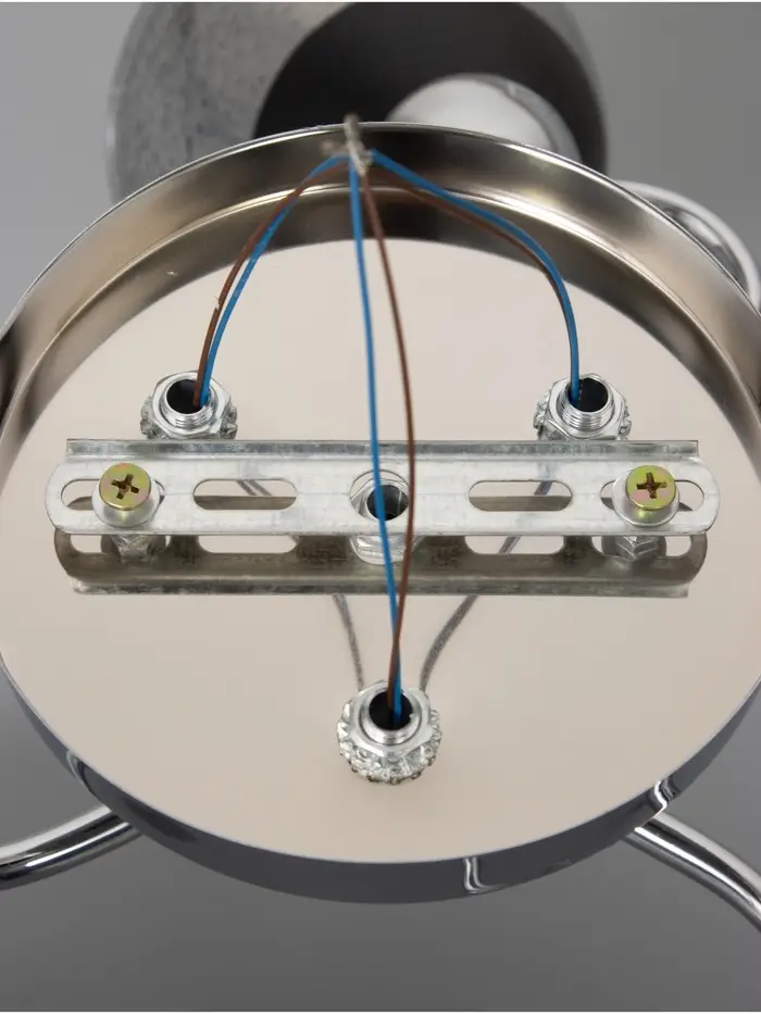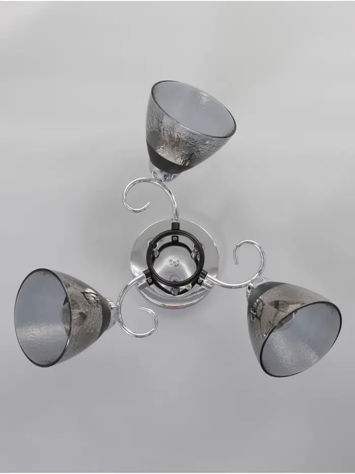 - Дизайн в стиле модерн: Хромированный каркас и конусные стеклянные плафоны в серо-чёрной гамме создают строгую, технологичную композицию. Такой светильник не перегружает интерьер, но при этом выглядит выразительно.
