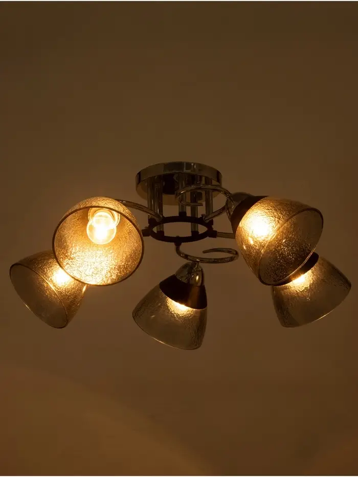 - Компактная высота — 24 см: Потолочная установка без подвеса делает люстру подходящей для помещений с низкими потолками. Она не перегружает пространство, сохраняя ощущение лёгкости и порядка.