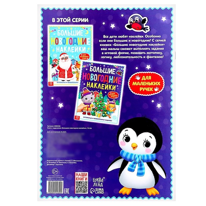Книга с заданиями «Большие новогодние наклейки», 16 стр., формат А4