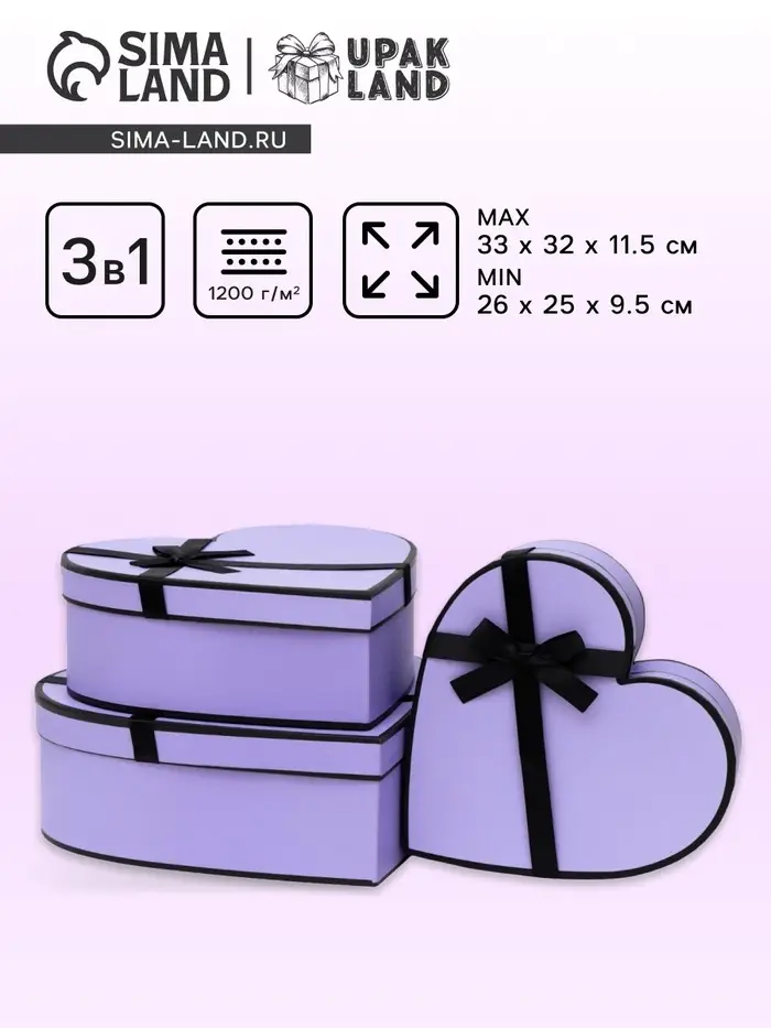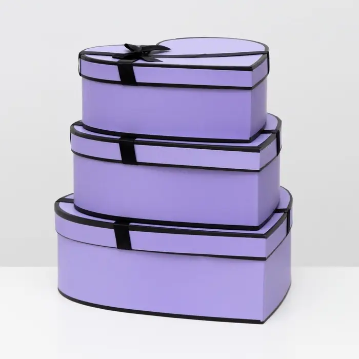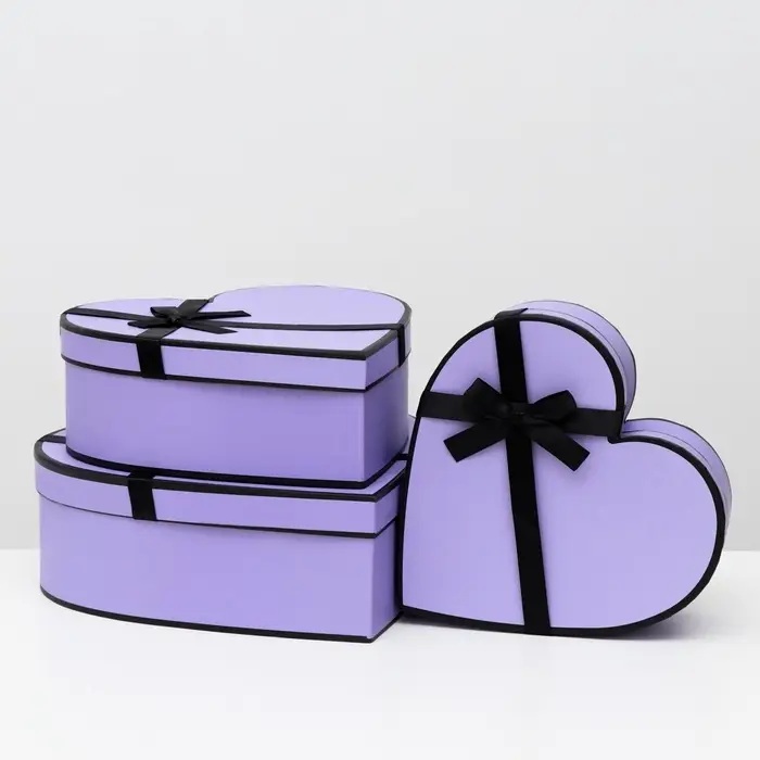 Нежность в большом формате. Набор коробок-сердец 3 в 1, сиреневые — это упаковка для объемных подарков на День влюбленных, 8 Марта или свадьбу. Три коробки в форме сердца создают гармоничную композицию для крупных презентов в нежной цветовой гамме.