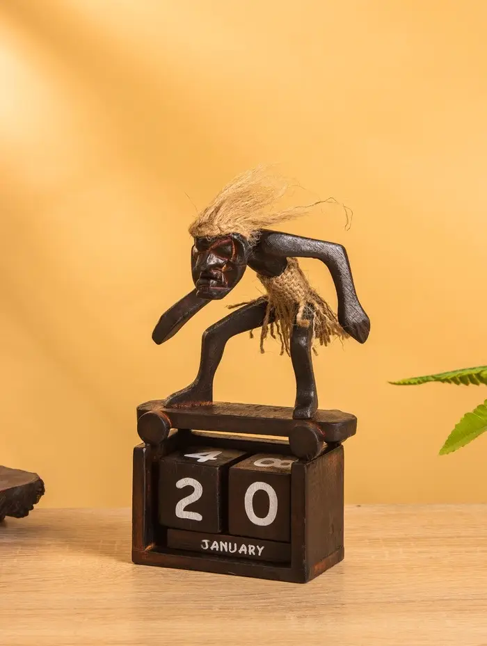 Календарь, который работает вечно. Деревянный настольный календарь «Абориген» — это практичный и стильный аксессуар для рабочего стола, выполненный в виде резной фигурки. Он избавляет от необходимости ежегодно менять бумажные календари, предлагая элегантное и долговечное решение.