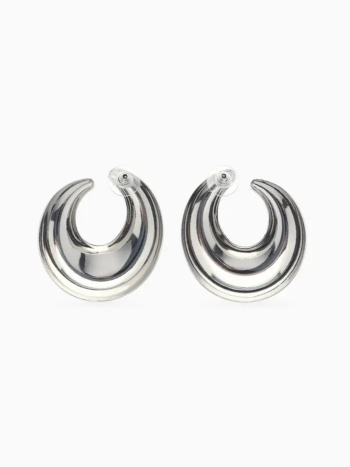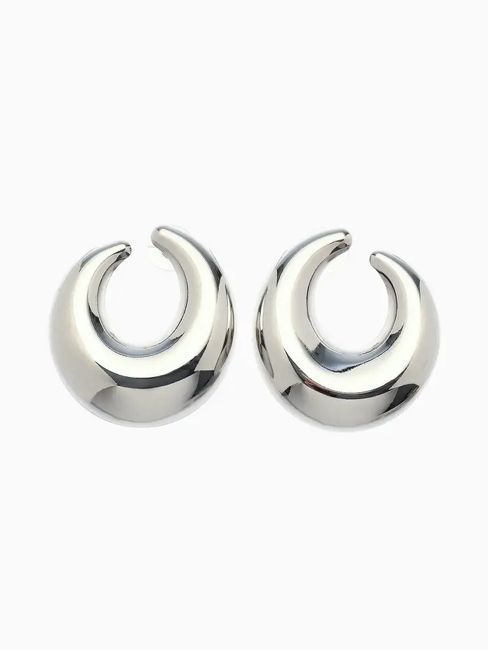 Серьги металл «Кольца», полумесяц, цвет серебро