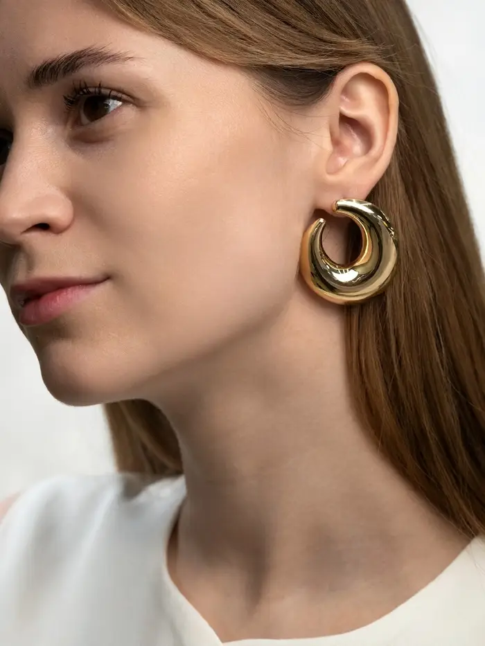 Элегантные золотые серьги в форме полумесяца — это идеальный аксессуар для женщин, предпочитающих минимализм и стиль. С длиной 4,3 см и утончённым дизайном, они легко вписываются в любой образ, добавляя нотку изысканности. Эти серьги подойдут как для повседневной носки, так и для особых случаев, подчеркивая вашу индивидуальность.