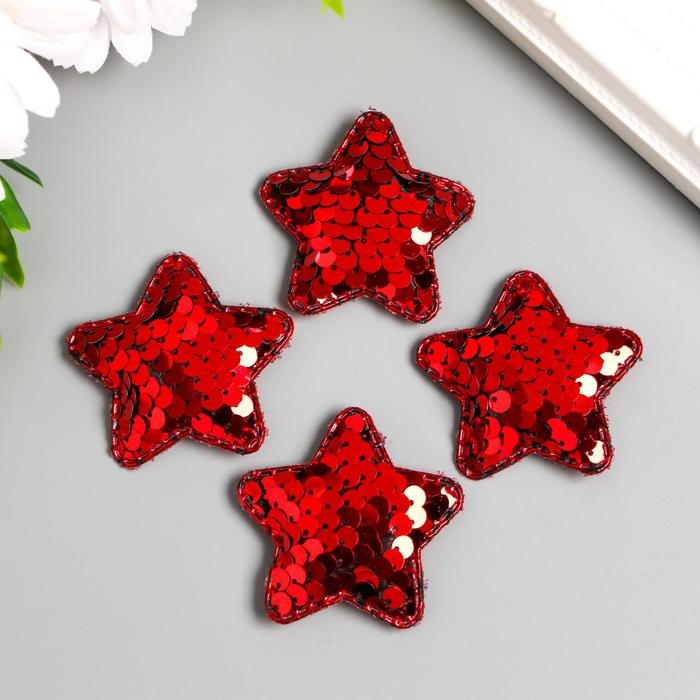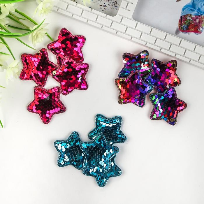 Декор для творчества текстиль "Звёзды" пайетки набор 4 шт МИКС 5х5 см
