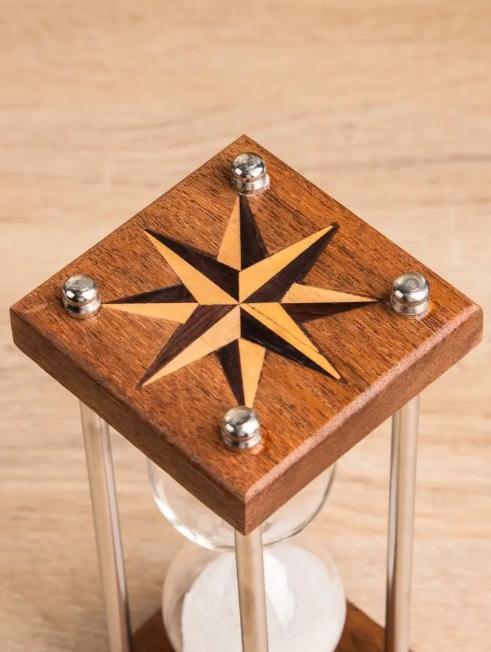 Время течёт, а стиль остаётся. Деревянные песочные часы «Стороны света» на 2 минуты — это измеритель времени и элегантный арт-объект. Композиция из дерева, стали и стекла привносит в интерьер дух путешествий и классической навигации.