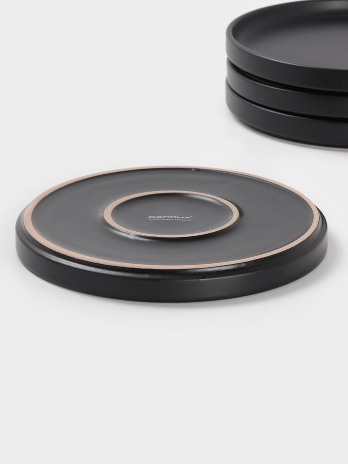 Набор тарелок Доляна «Гранит», 4 шт., d=20 см, керамика, чёрный