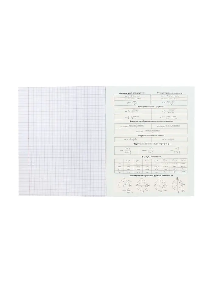Базовые алгебраические правила в начале тетради экономят время на уроках и при выполнении домашних заданий. Клетчатая разметка помогает ровно записывать многоэтапные вычисления и строить координатные плоскости. Тематический дизайн создает позитивный настрой для регулярной работы с математическими задачами.