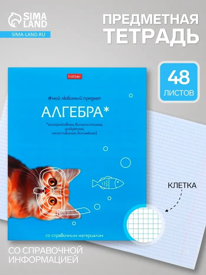 Предметная тетрадь по алгебре Hatber «Мой любимый предмет», 48 листов, в клетку, со справочным материалом, обложка из мелованного картона