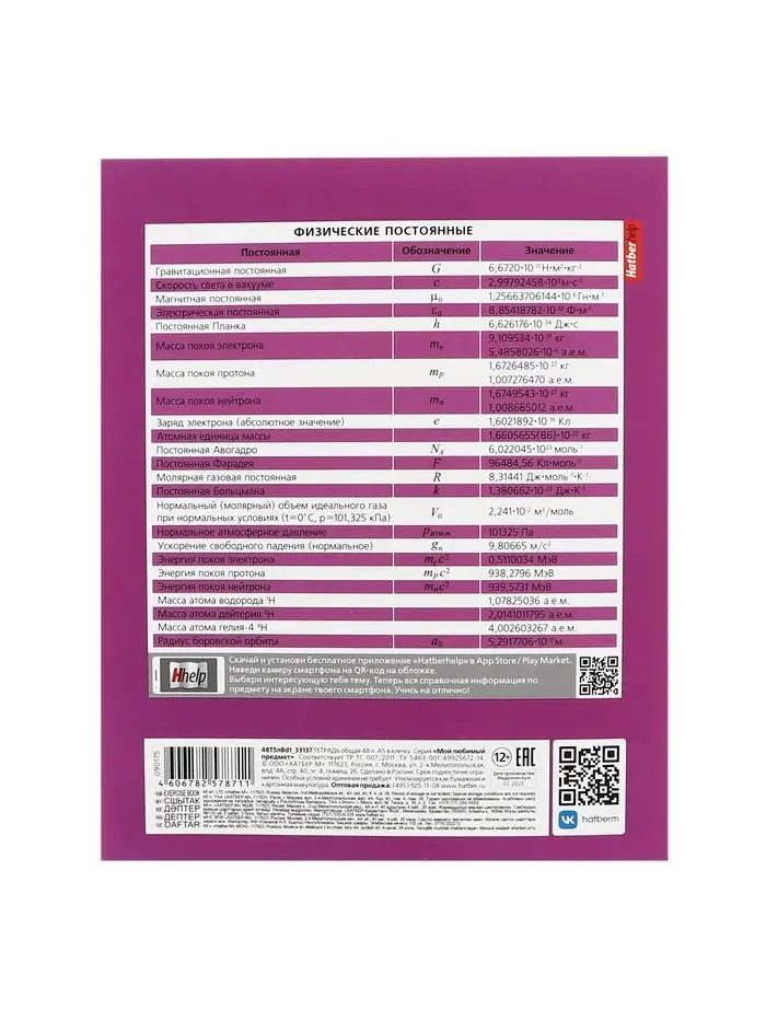 Эта тетрадь по физике станет надежным помощником в освоении законов природы. Она создана для тех, кто ценит точность: здесь удобно записывать формулы, чертить схемы и решать задачи. Встроенный справочник с основной информацией, чтобы вы могли сосредоточиться на сути вычислений.