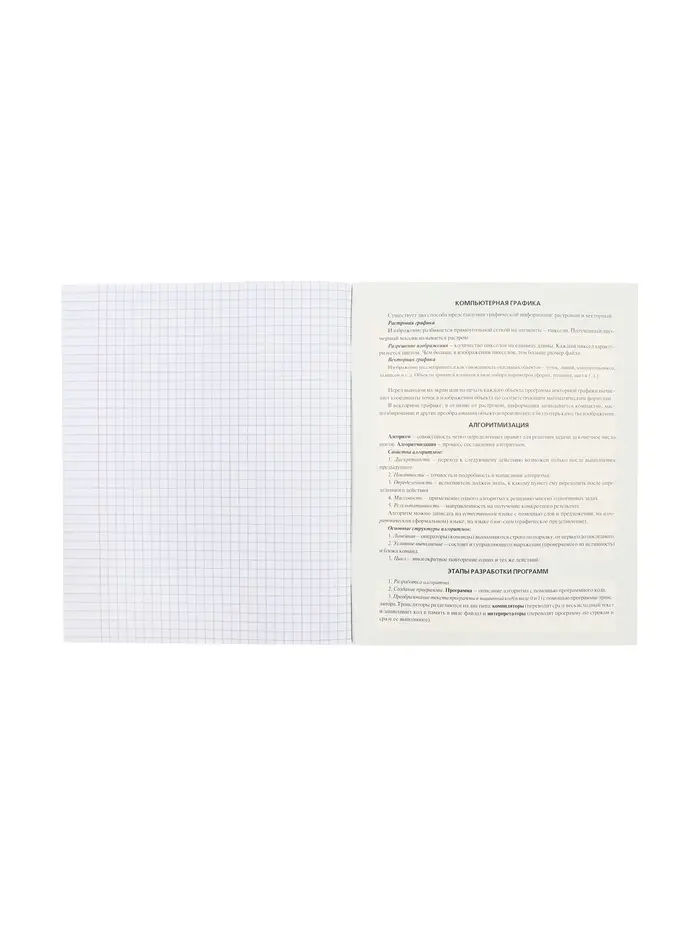 Эта тетрадь по информатике станет верным помощником на каждом уроке. Она создана для тех, кто ценит порядок в записях и хочет, чтобы все необходимые формулы и правила были всегда под рукой. Здесь найдётся место для конспектов, алгоритмов и решений задач, превращая учёбу в более организованный и приятный процесс.
