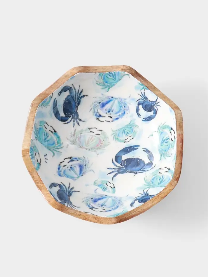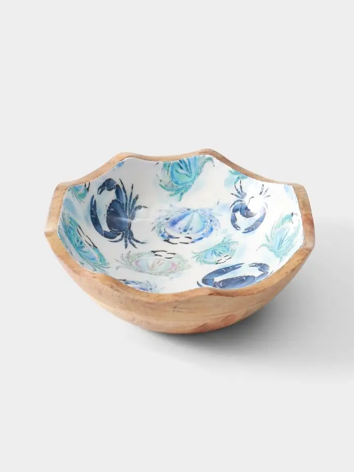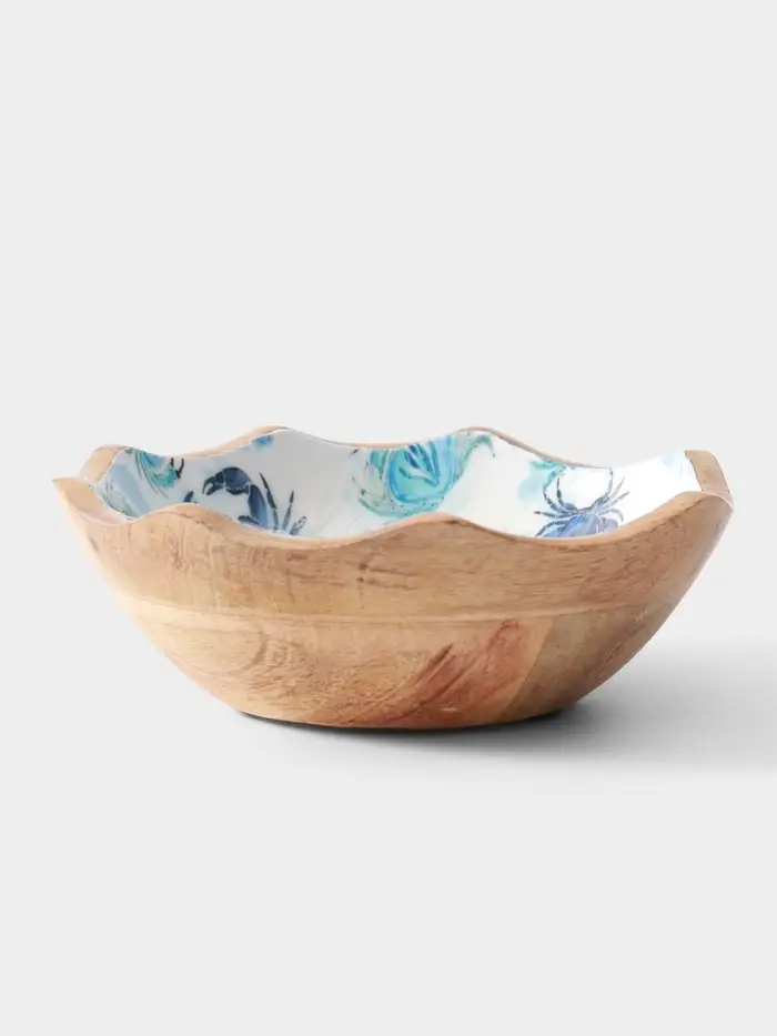 Природная элегантность для вашего стола! Деревянный салатник с крабами — это стильная и экологичная посуда ручной работы. Изделие из массива манго с морским рисунком создаёт особое настроение, превращая обычную трапезу в атмосферное событие.