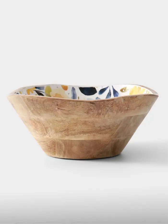 Природная гармония на вашем столе! Деревянный салатник с цветочным узором — это стильная и экологичная посуда для подачи салатов, закусок и десертов. Изделие ручной работы из массива манго создает особое настроение, превращая любое блюдо в элемент декора.