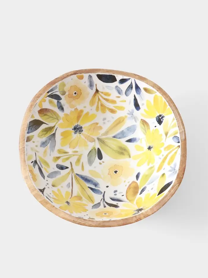 Салатник «Желтые и синие цветы», 29×29×11 см, дерево манго