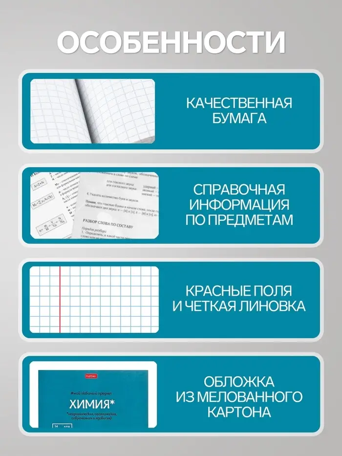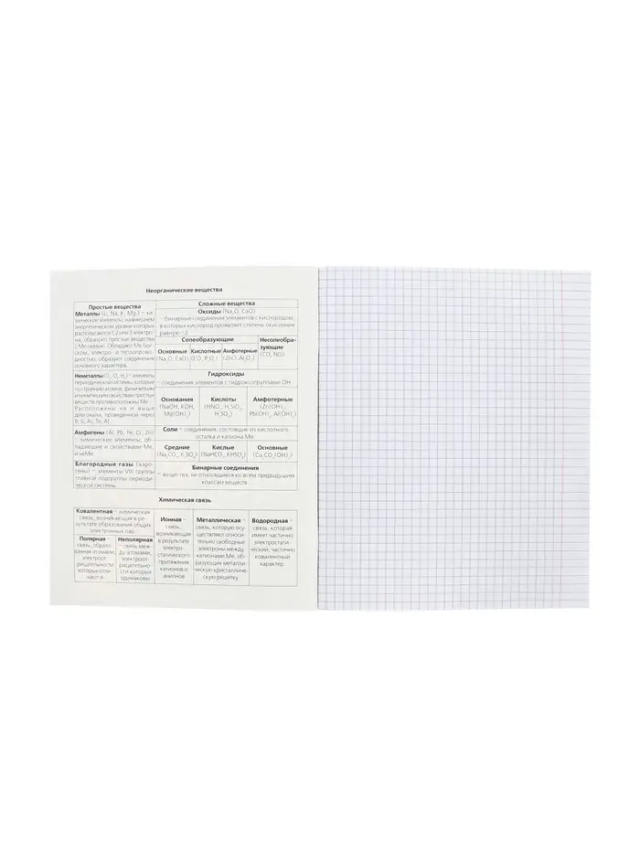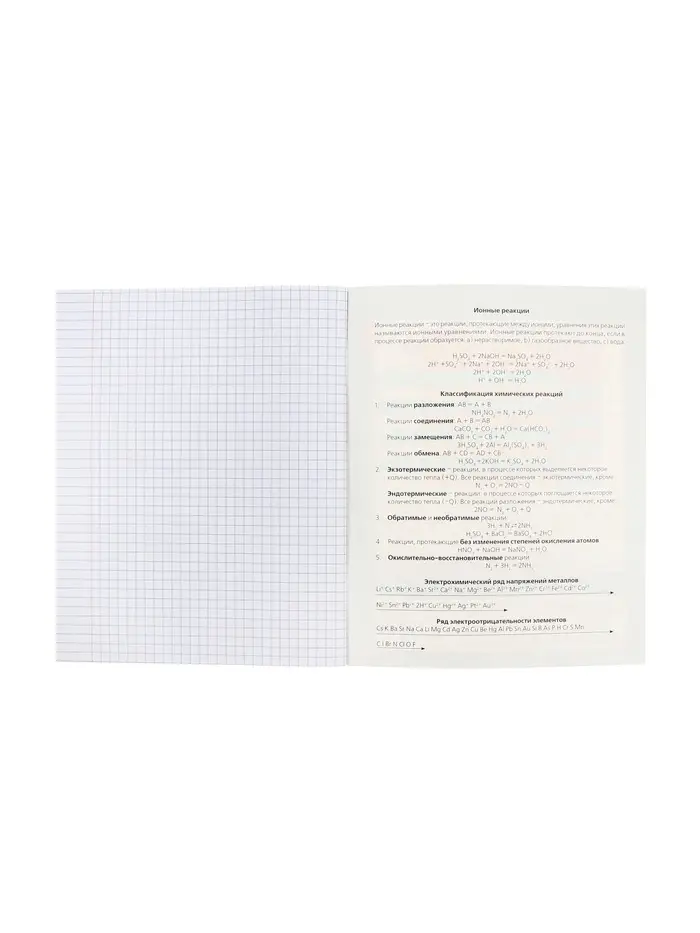 Эта тетрадь по химии создана для организованного изучения элементов и реакций. Она помогает систематизировать формулы, уравнения и лабораторные наблюдения. Со встроенным справочным материалом вы тратите меньше времени на поиск информации и больше — на понимание предмета.