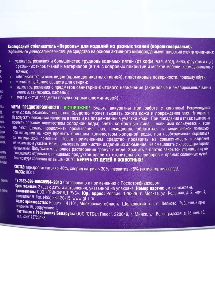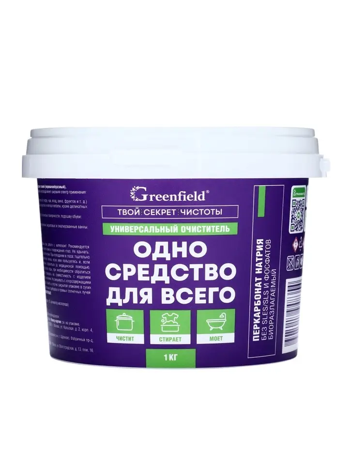 Отбеливатель кислородный Greenfield, универсальный очиститель, 1 кг