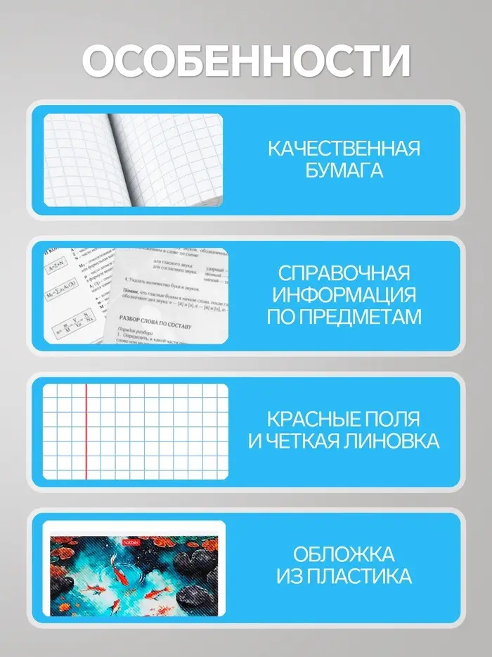 - Надежное скрепление, сохраняющее целостность тетради при активном использовании.