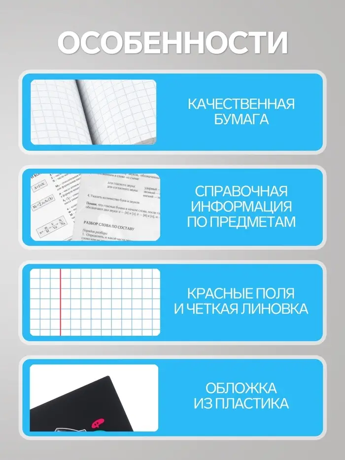 - Пластиковая обложка с тиснением сохраняет презентабельный вид в течение всего учебного года.