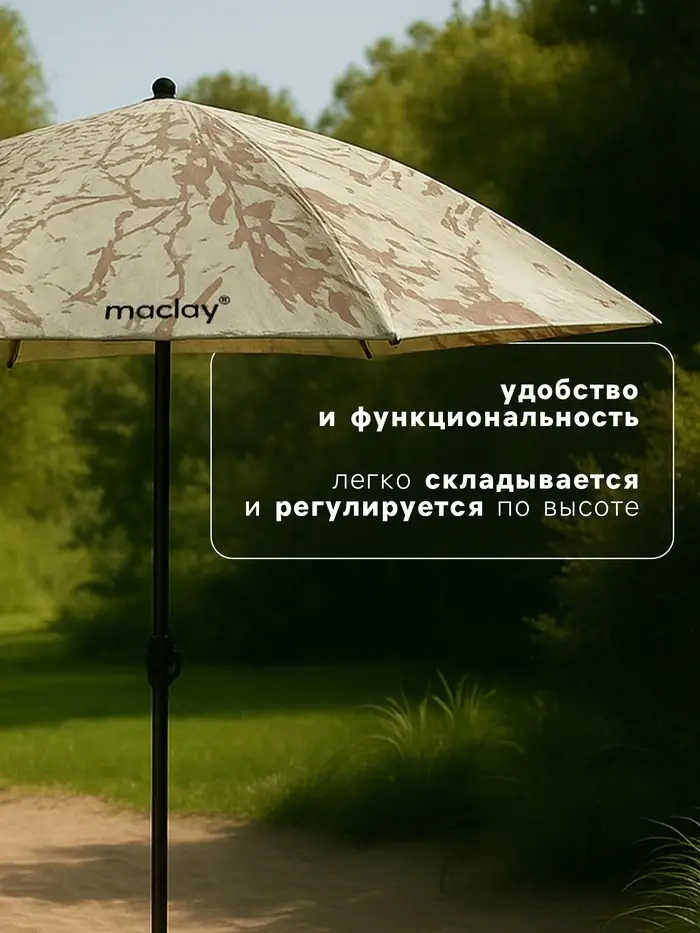 Зонт maclay - ваш надежный защитник от палящего солнца. Легко устанавливается и регулируется по высоте, обеспечивая комфортную тень в любом месте. Прочная конструкция и продуманная эргономика делают его незаменимым помощником на пляже, даче или пикнике. Выбирайте удобство и наслаждайтесь отдыхом без забот!
