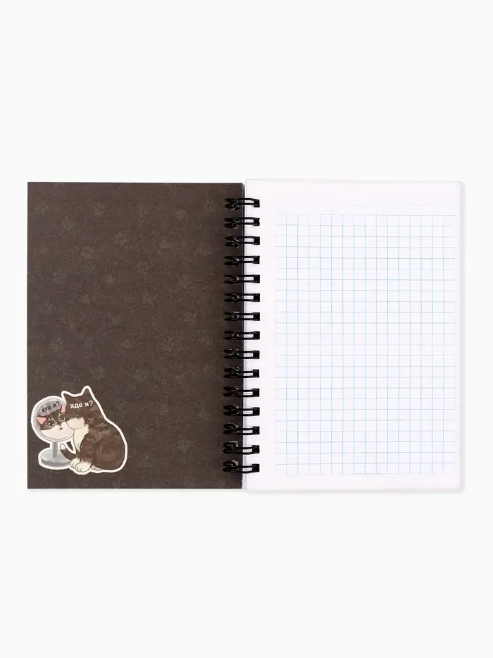 Записная книжка А6, 100 листов, в клетку «Мемные коты»