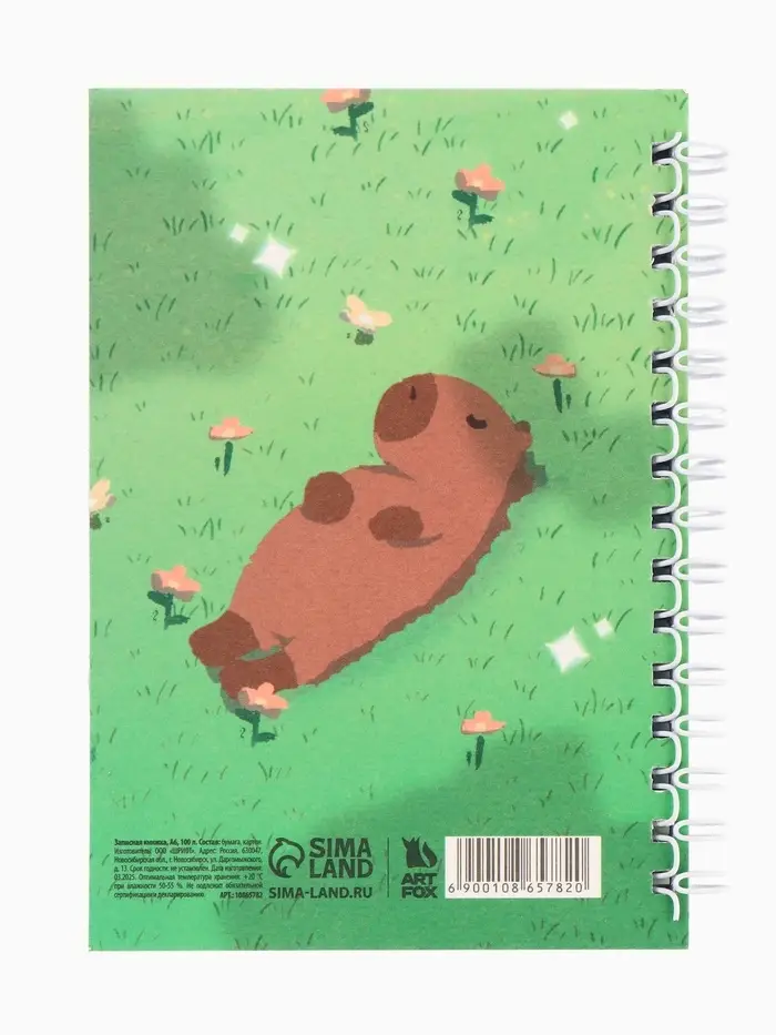 Записная книжка А6, 100 листов, в клетку «Капибара»