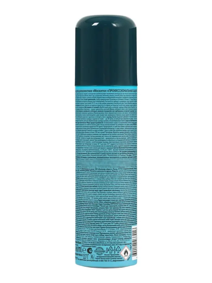 Описание: средство репеллентное для защиты взрослых людей от нападения кровососущих насекомых (комаров, мокрецов, москитов, мошек, слепней, блох), таежных и лесных клещей (переносчиков возбудителей клещевого энцефалита и боррелиоза) при нанесении на открытые части тела, одежду и другие изделия из ткани. 5 часов защиты.Способ применения: перед применением встряхните упаковку в течение 2-3 секунд. Одежду и другие изделия из ткани обрабатывать на открытом воздухе (вне помещений). Располагать одежду и направлять струю средства по направлению ветра. Средство распылять на изделия с расстояния 20-25 см от них, держа упаковку в вытянутой руке. После обработки одежду просушить. Для защиты от насекомых распылить средство на ладонь и нанести, не втирая, на открытые участки тела. Одежду и другие изделия из тканей обрабатывать до легкого увлажнения. Для защиты от клещей обрабатывать весь комплект одежды из расчета 20 сек/м², особенно тщательно - вокруг щиколоток, коленей, бедер, плечевого пояса и мест возможного проникновения клещей к телу. В очагах клещевого энцефалита соблюдайте правила поведения при пребывании на опасной территории: осматривать себя для обнаружения клещей и правильно одеваться (брюки должны быть заправлены в сапоги или носки с плотной резинкой; рубашка или куртка с длинными рукавами и плотно плотно прилегающими манжетами заправлены в брюки), нельзя садиться или ложиться на траву, по возвращении из леса необходимо раздеться и тщательно осмотреть тело и одежду.Время защитного действия: от насекомых при нанесении на кожу - более 4 часов, при нанесении на одежду и изделия из ткани - до 30 суток, от клещей при нанесении на одежду - до 5 суток. Для увеличения защитного действия обработанную одежду хранить в полиэтиленовом пакете. Средство обеспечивает неполную защиту от клещей. Будьте внимательны.Состав: диэтилтолуамид (50,0%), <5%: отдушка, триэтиленгликоль, ≥30%: пропеллент углеводородный (пропан, бутан, изобутан), 15-30%: спирт этиловый денатурированный (16,9% об.).Срок годности: 5 лет от даты изготовления.