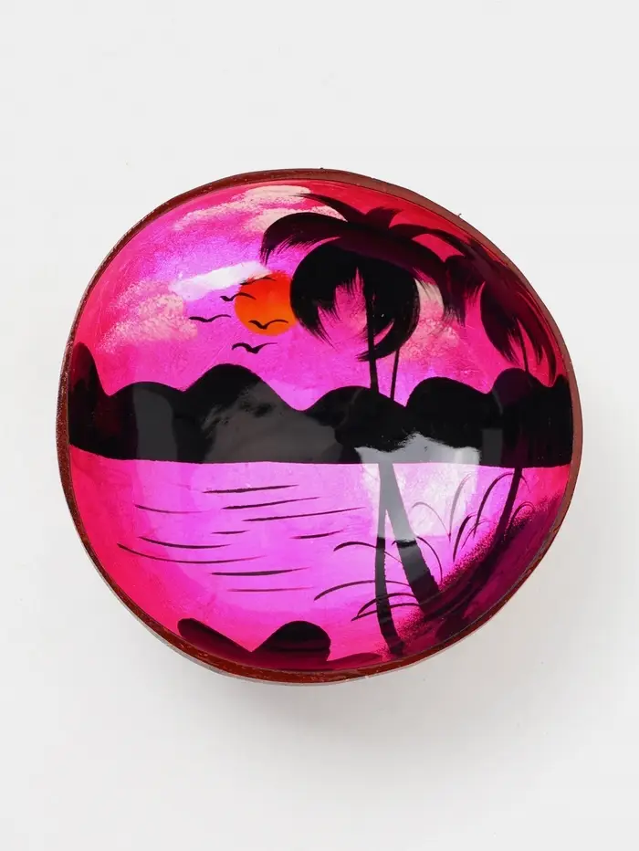 Закат, застывший в фактуре кокоса. Чаша ручной работы с рисунком «Закат» — это уникальный предмет для сервировки и декора. Изделие из натурального материала привносит в интерьер тепло и природную эстетику.