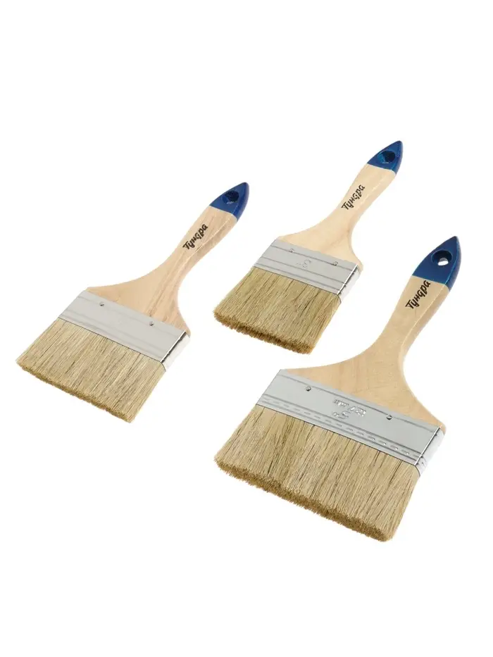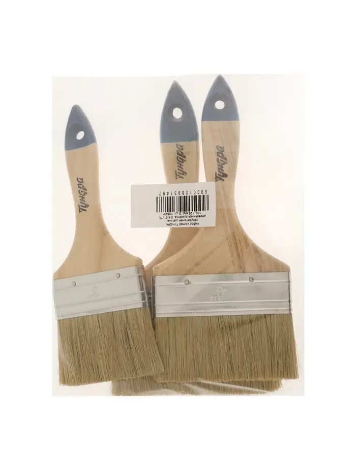 Набор кистей ТУНДРА, натуральная щетина, деревянная рукоятка, 3-4-5" (75, 100, 125 мм),3 шт.