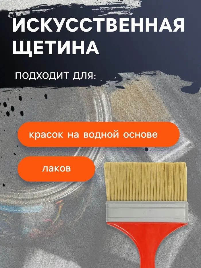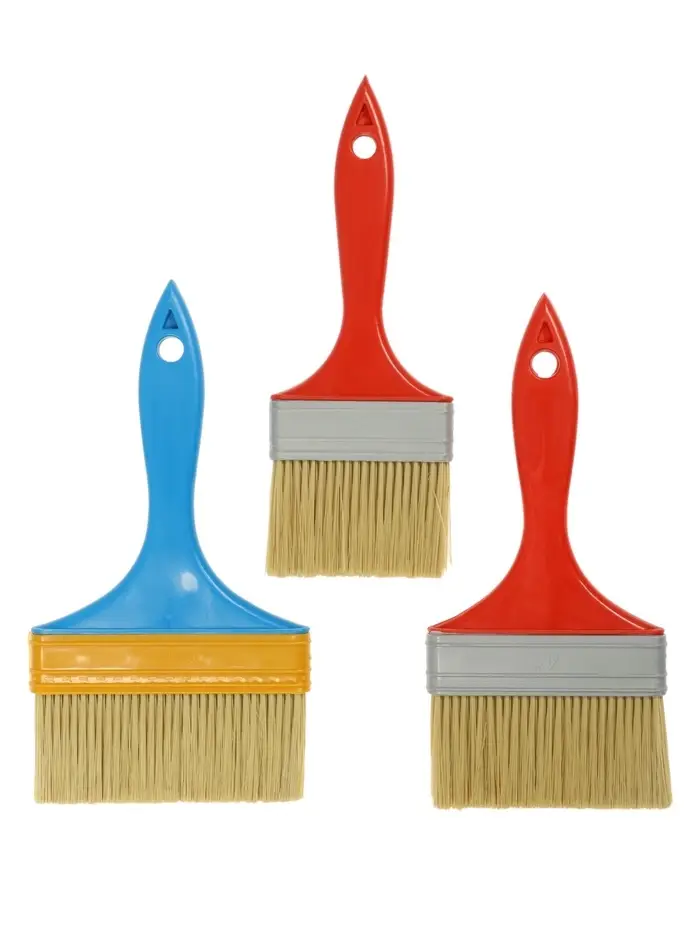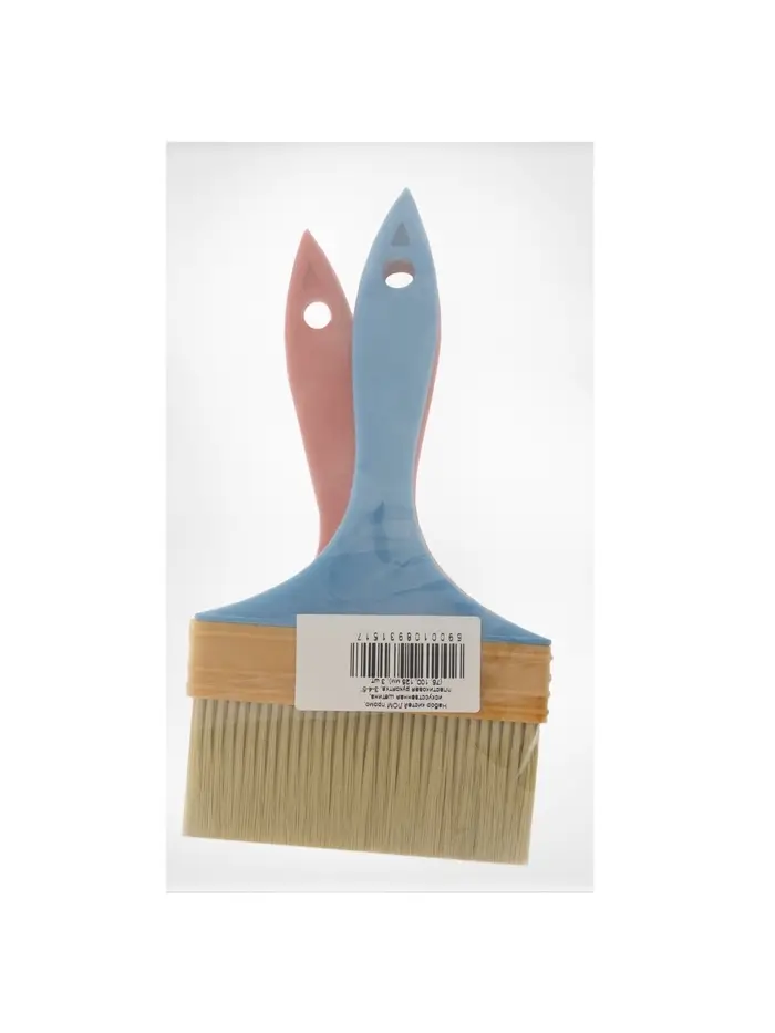 - Искусственная щетина: Не разбухает, не теряет форму. Распределяет краску равномерно, экономя расход. Устойчива к влаге и щелочам, подходит для водоэмульсионных, латексных и клеевых составов.