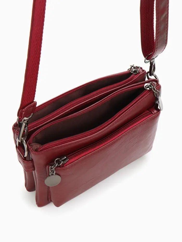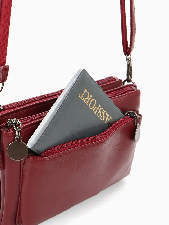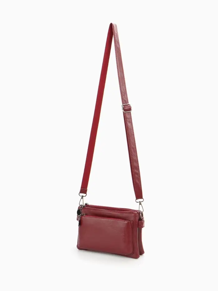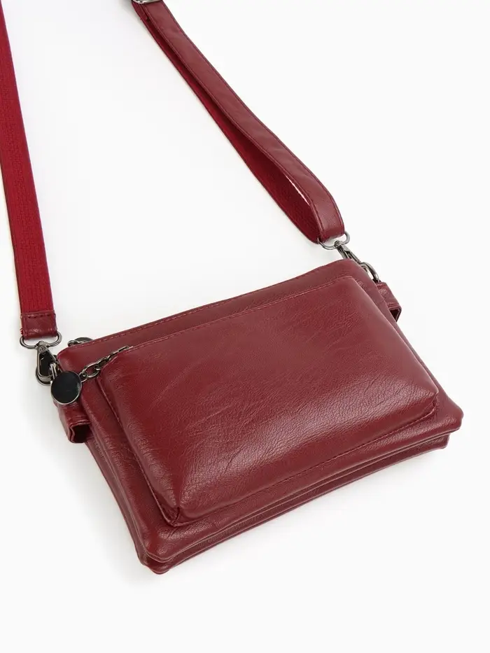 Сумка женская кросс-боди на молнии, 20.5×2×13 см, бордовая
