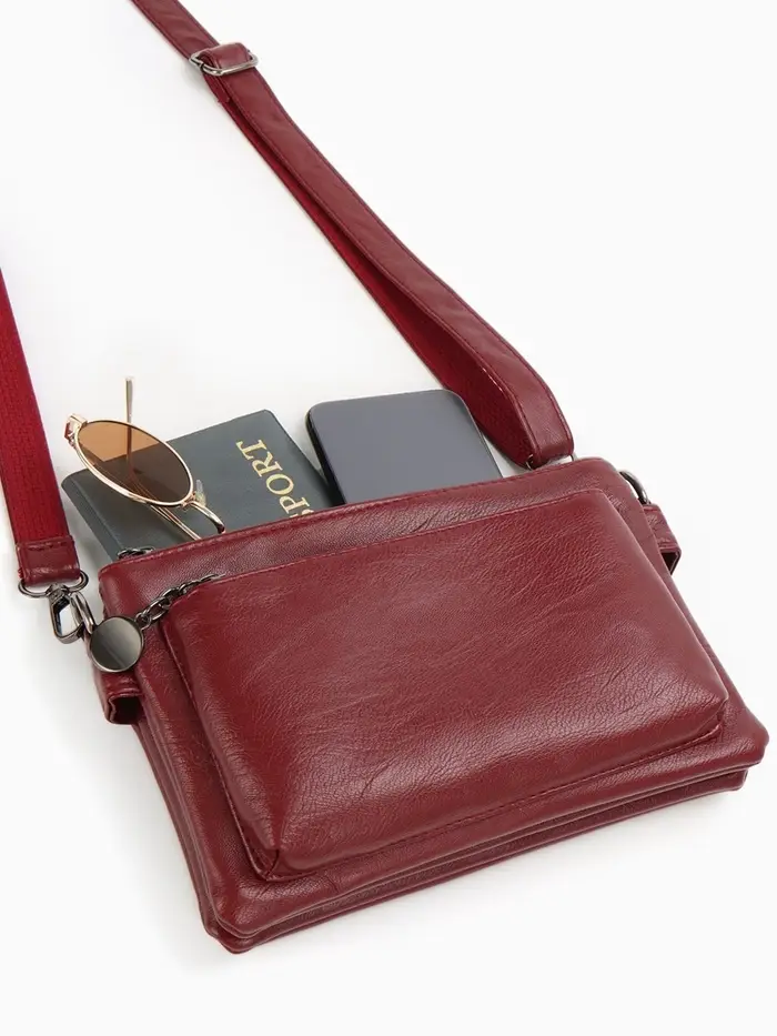 Элегантная бордовая женская сумочка на длинном ремне станет вашим незаменимым спутником в повседневной жизни. Эта компактная и удобная кросс-боди модель не только аккуратно подчеркнёт ваш образ, но и обеспечит практичность благодаря своим продуманным функциям. Изготовленная из высококачественной искусственной кожи, она сочетает стиль и надежность.