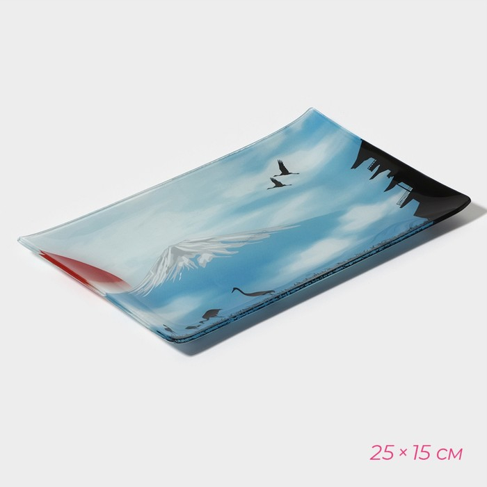Набор для суши из стекла Доляна «Журавль», 3 предмета: соусники 8×2 см, 8×6 см, подставка 25×15×2 см